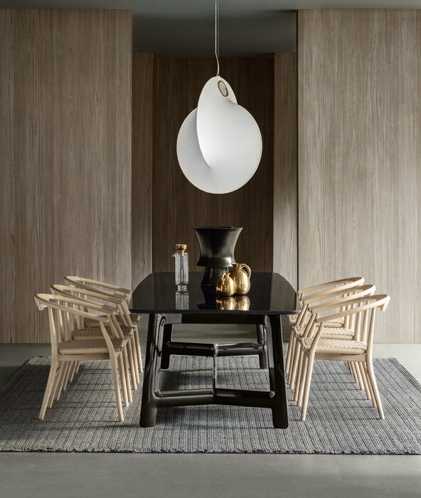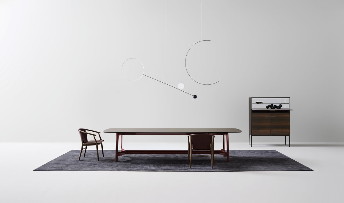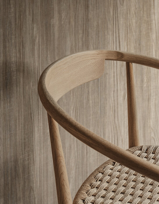 Jens 是一系列椅子(帶扶手或不帶扶手)和凳子,具有典型的 20 世紀 50 年代風格,同時也以現代風格詮釋了中國古典椅子。重新發現車削和彎曲木材的工藝,結果是採用各種木材飾面的五軸框架。Jens系列包括多種版本:完全木質、木質框架和皮革座椅、木質框架和厚皮革座椅和靠背、木質框架和編織纖維素繩座椅。